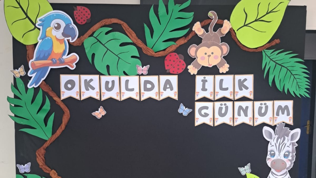 2025-2026 Eğitim Öğretim Yılı İlk Ders Yeşil Vatan. Millî Eğitim Bakanlığı tarafından alınan karar doğrultusunda 2025-2026 Eğitim Öğretim yılının ilk teması "Yeşil Vatan "olarak belirlenmiştir.Bunun yanı sıra okulumuzda muhtelif yerlere yeşil vatan afişleri asılmış ve de öğretmenlerimiz tarafından yapılan "Okulda İlk Günüm" panosu da bu temada hazırlanmıştır.